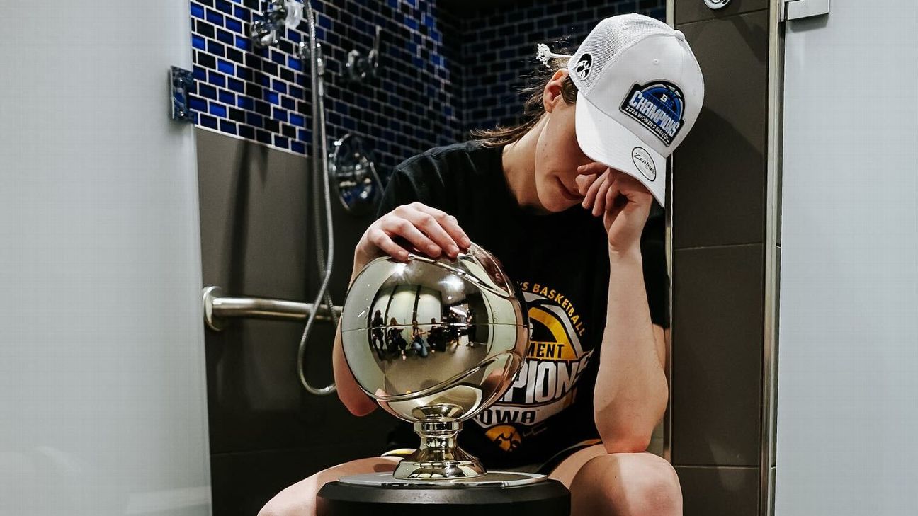 Caitlin Clark recreated an iconic Kobe Bryant photo after winning her third consecutive Big Ten conference title.