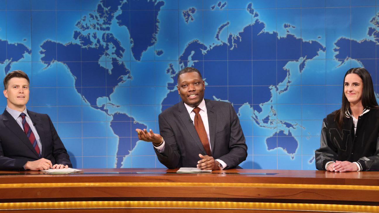 Caitlin Clark gives Michael Che '3 pointers' in SNL cameo