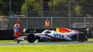 Liam Lawson fumes as marshals run across the track at the Mexico City Grand Prix.